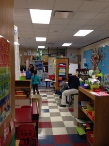 Entramos na escola ele ficou observando tudo, afinal o ambiente escolar aqui é bem diferente do da escola que ele freqüentava no Brasil. Nos dirigimos até a secretaria, fomos bem recebidos e nos acompanharam até a sala de aula dele. Já havia algumas crianças lá dentro e ele ficou observando tudo meio desconfiado. A sala de aula é bem grande e colorida e dividida em vários setores e tem banheiro dentro da sala de aula.  A professora venho ao nosso encontro, ajoelhou na frente do Theo e o recebeu com muita atenção e já foi levando ele para dentro da sala de aula e ele foi numa boa e me deu um “Thau” meio apreensivo. Em seguida chegou uma outra professora, a que vai ficar exclusivamente com ele durante este período de adaptação. Conversamos com ela, explicamos a situação do Theo e ela já foi pra junto dele e eles sentaram juntos em uma mesinha e começaram a fazer uma atividade enquanto as outras crianças iam chegando. Fiquei uns cinco minutos observando ele de longe, como estava tudo bem, viemos embora.
