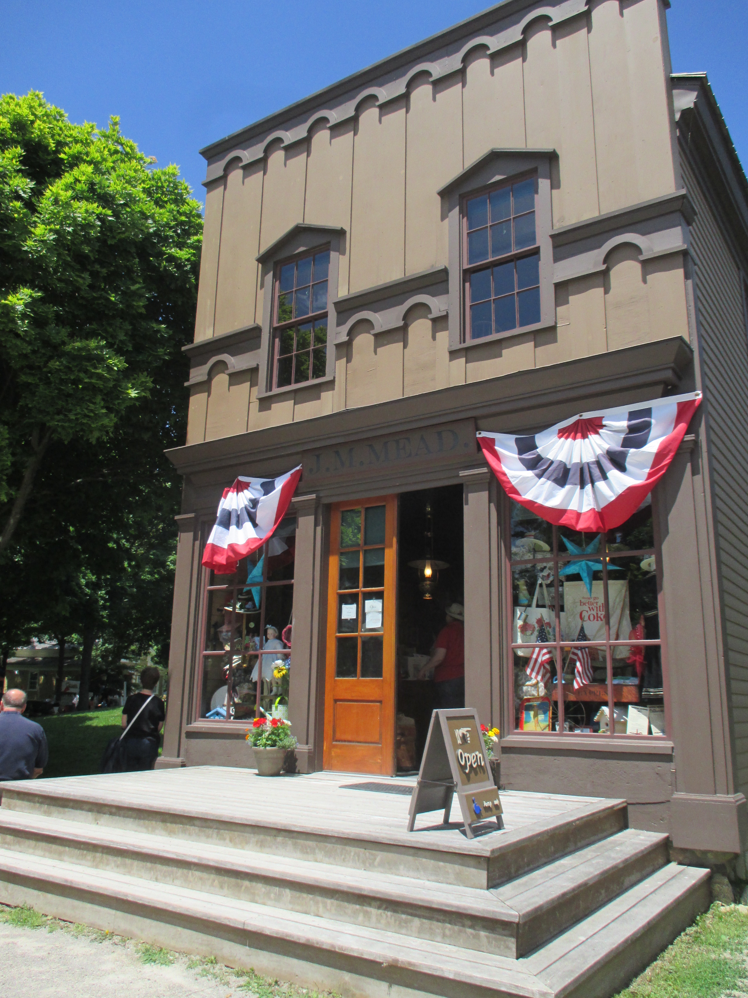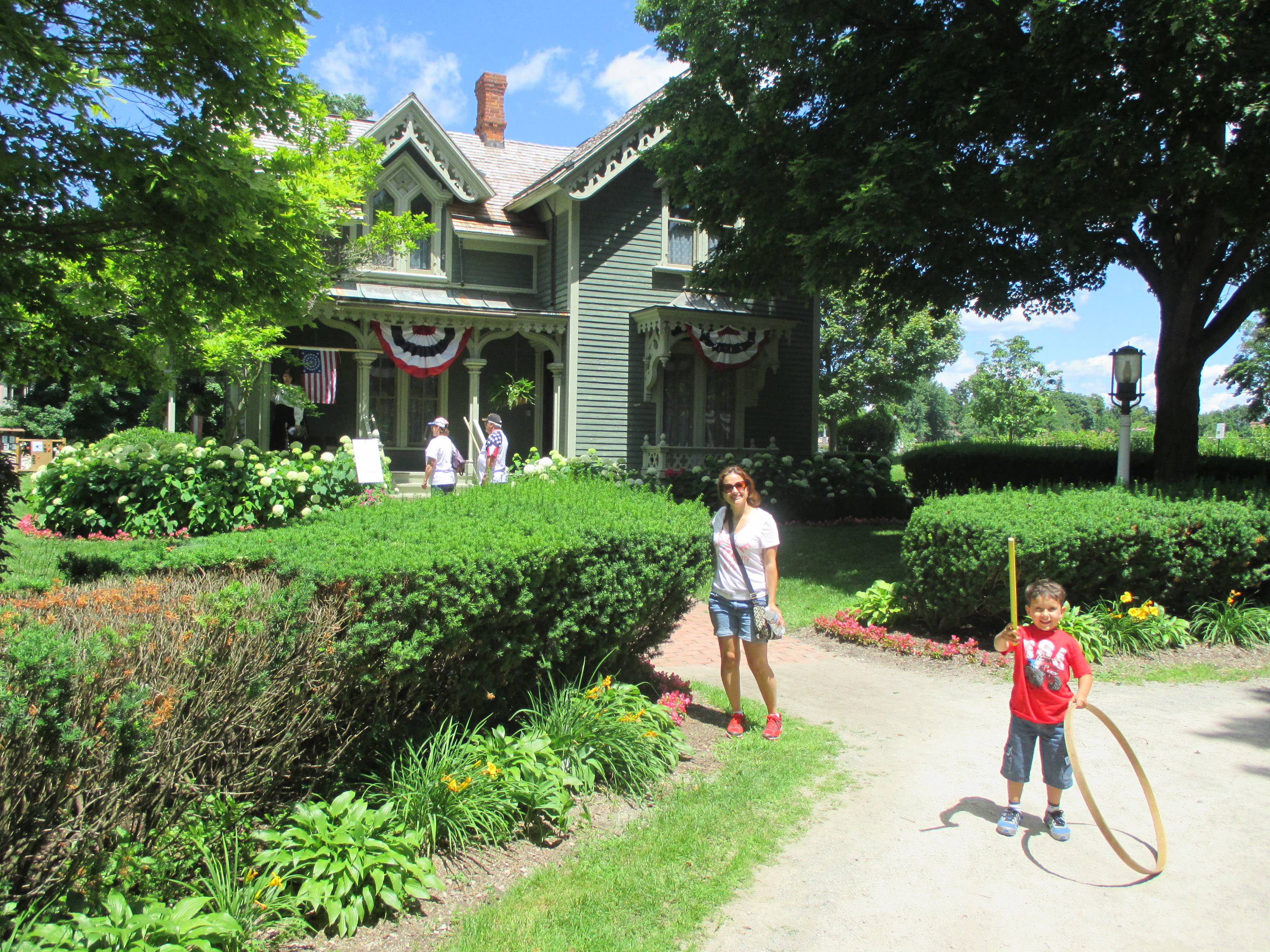 Depois do desfile, almoçamos ali mesmo no centrinho de Northville que é uma graça. Agora que estamos no verão os restaurantes colocam as mesinhas nas calçadas o que dá todo um charme especial. Aproveitamos que estávamos lá e fomos no Mill Race Village, que é uma vilinha antiga bem no centro dessa cidade. É como se fosse um museu da cidade a céu aberto que tenta retratar a vida ali no início do século passado. Haviam pessoas com roupas da época e estava tendo explicações históricas sobre o dia da Independência dos Estados Unidos.
