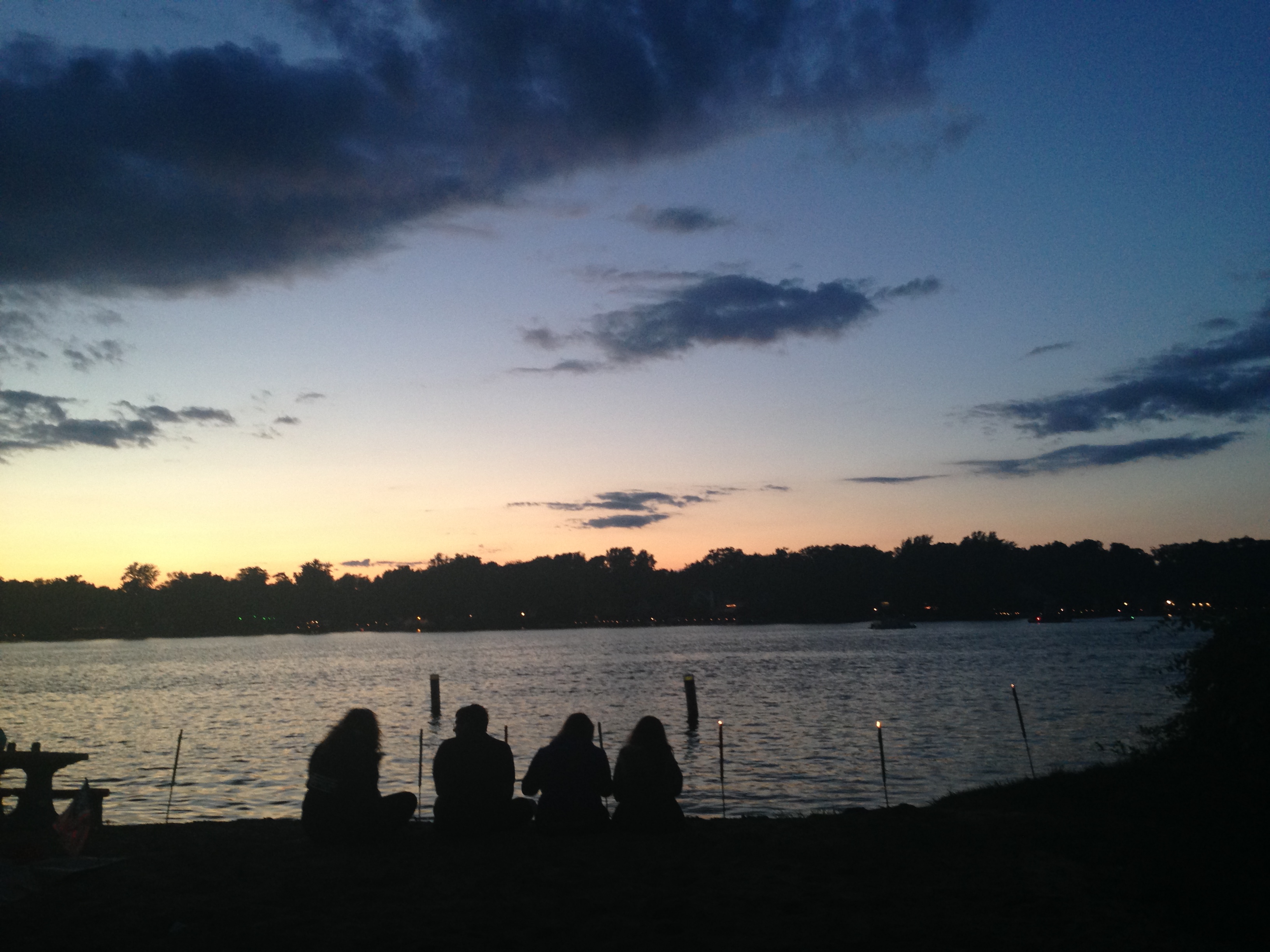 Acho que o principal evento desse feriado são as queimas de fogos. Aqui na região em que moramos tiveram várias então na noite do dia 3 julho fomos até um dos diversos lagos que tem por aqui para ver os fogos. A queima de fogos começou assim que escureceu, por volta das 9:30 da noite. As pessoas levaram cadeiras e edredons para sentarem na beira do lago para pode ver os fogos. Como nós ainda não compramos as nossas cadeiras de praia assistimos em pé mesmo. Foi muito bonito, parecia até noite de Ano Novo, só que aqui eles soltam os fogos mais devagar, só no final é que soltaram um monte de fogos juntos o que dá aquele efeito legal.