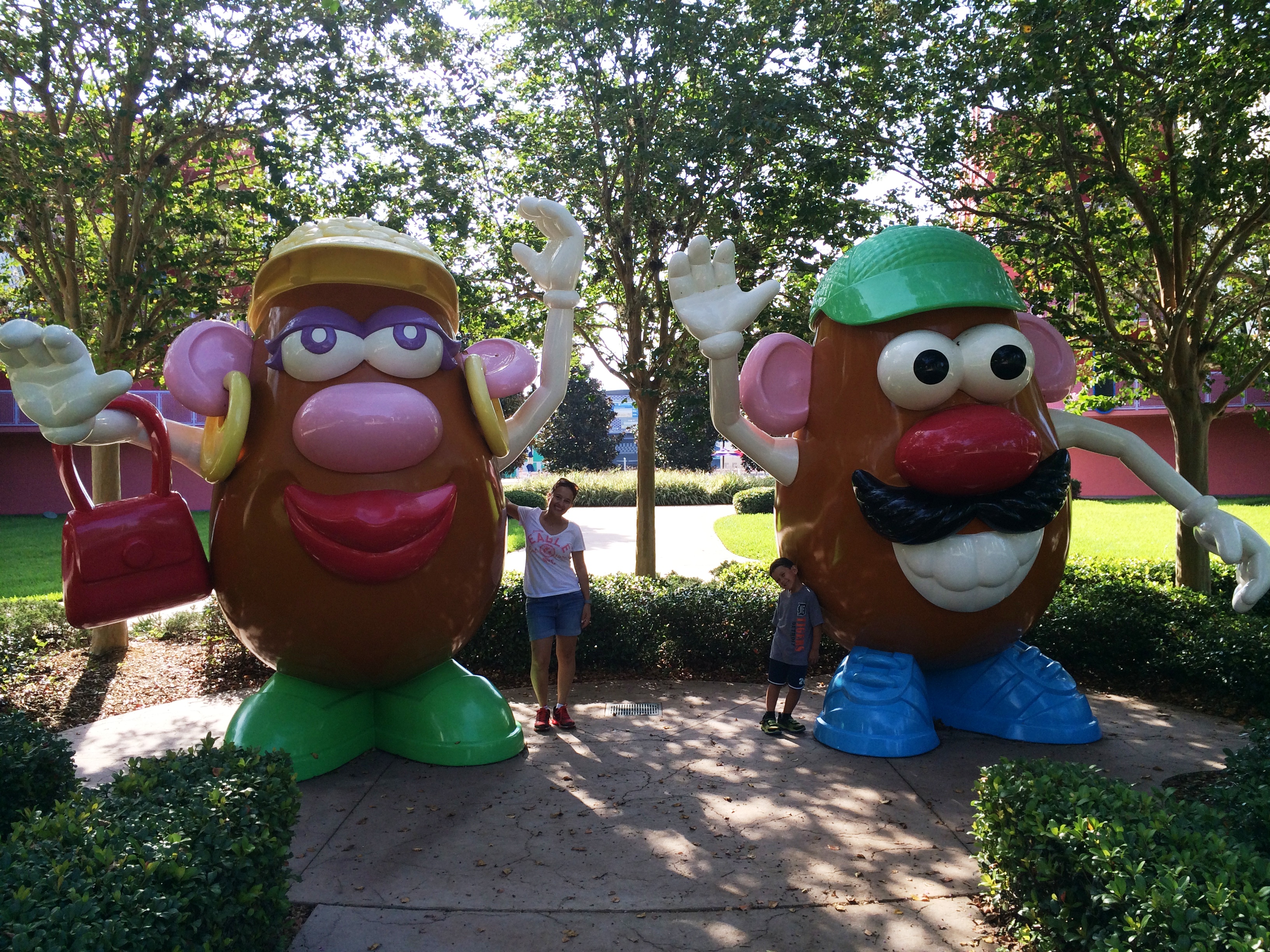 Pela questão tempo também, e por não termos alugado um carro, ficamos hospedados em um hotel dentro do complexo Disney. Ficamos no Disney Pop Century que é uma das opções mais baratas lá dentro. O hotel é legal, mas com o preço que pagamos é possível ficar hospedado em um hotel muito melhor fora do complexo Disney. Como foi a primeira vez do Theo na Disney, ficar neste hotel acrescentou uma magia a mais na viagem pois o quarto tem decoração com o tema Disney (nos edredons, nos quadros das paredes, na toalha enrolada na cama no formato do Mickey, os sabonetes e shampoos personalizados Disney). Na área externa do hotel tem imagens dos personagens enfim….estas coisas que os pais querem oferecer para o filho e que depois que termina a viagem ele nem lembra mais.