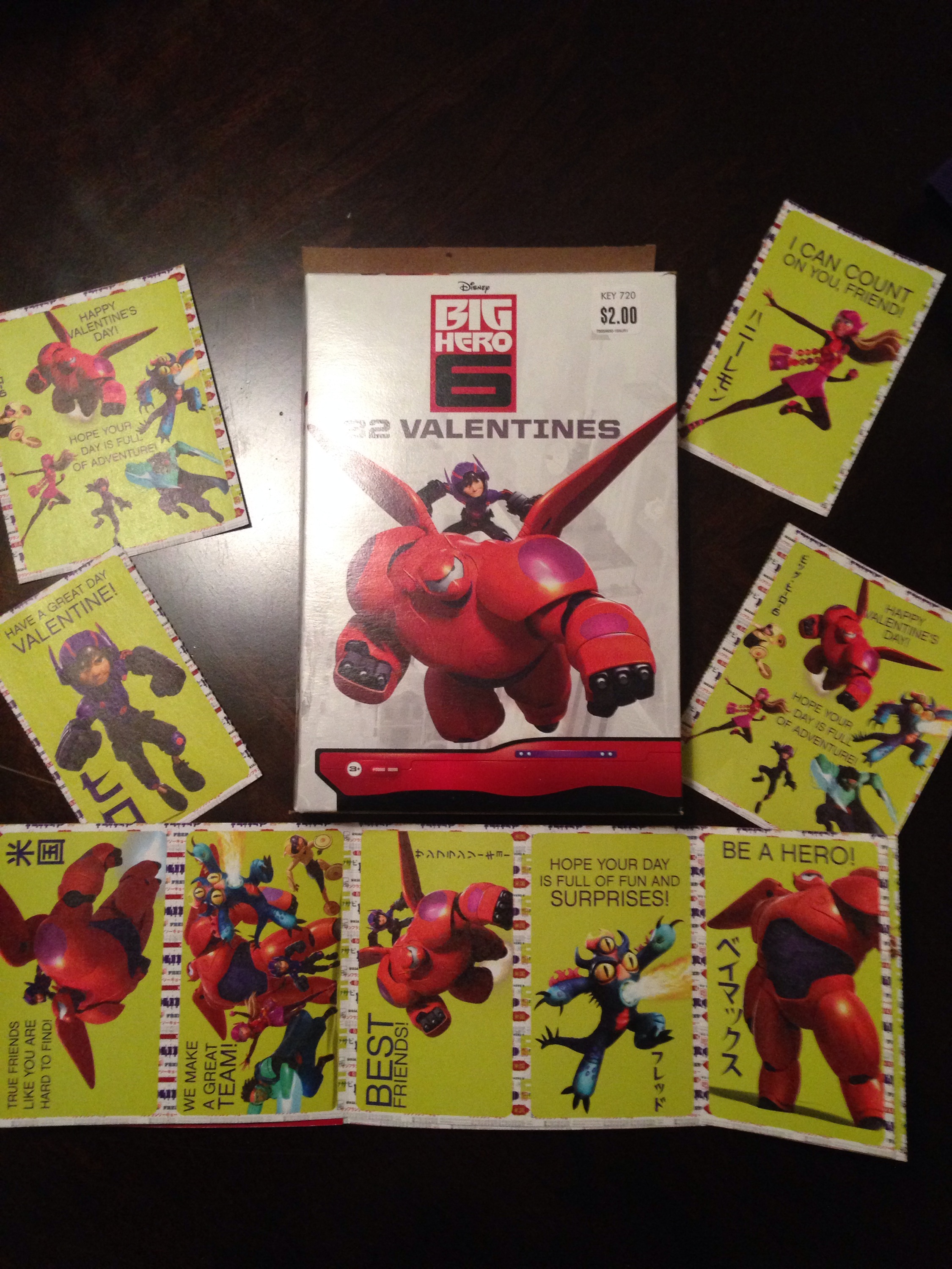 Estes cartões são vendidos em caixas com quantidades que variam de 15 a 36 por caixa e podem ser do personagem preferido da criança (aqui em casa o escolhido foi o cartão do Big Hero 6″), a criança também pode fazer o seu próprio cartão em casa também.