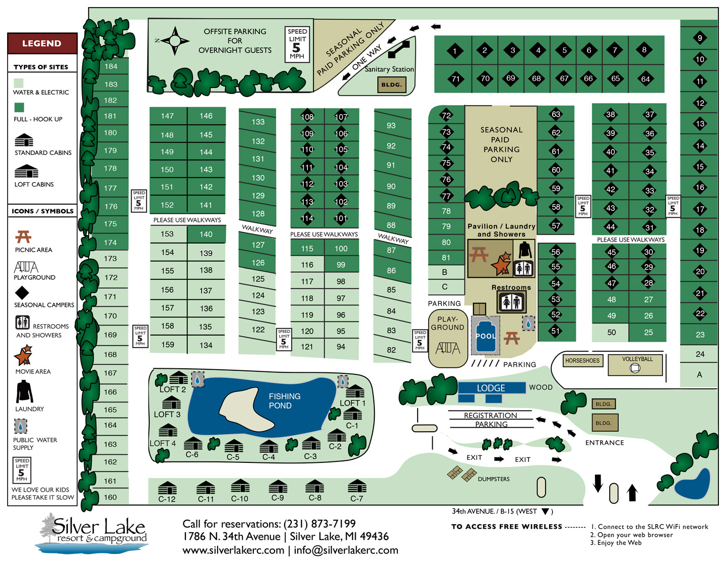 Exemplo de distribuição das áreas em um campground.(Silver Lake resort and campground)