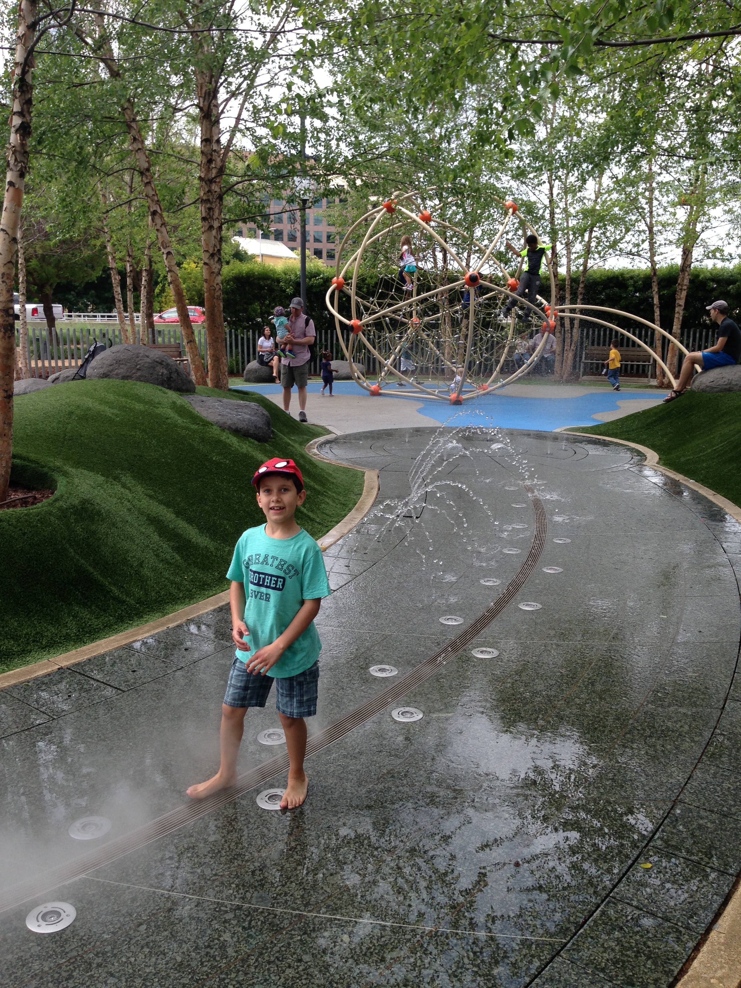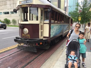 Tiramos um dia para passear por Dallas e conhecer um pouco a região. Estacionamos o nosso carro no subsolo do Museu de Artes de Dallas e pagamos $10 para deixar o carro lá o dia inteiro. Bem frente ao Museu de Arte tem um parque muito legal chamado Klyde Warren Park para ir com as crianças pois tem um splash playground onde as crianças podem brincar e se molhar. O dia estava quente por volta de uns 24°C o que para nós de Michigan é calor, então os meninos se divertiram bastante no parque. Na hora em que chegamos estava tendo aula de ioga no gramado do parque e tinham bastante gente participando e também estavam chegando vários foods trucks. Neste parque mesmo pegamos o bondinho/trolley (de graça) para ir até a região da uptown que é onde se concentra vários restaurantes. Estes bondes antigos que foram restaurados, fazem um trajeto bem legal pela uptown de Dallas e você pode descer e subir em qualquer ponto de parada que estão sinalizados nas ruas por onde ele passa e além do mais você não precisa pegar o carro e pagar outro estacionamento.