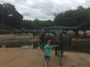 No dia seguinte fomos conhecer o Distrito histórico Fort Worth Stockyard. É um quarteirão da cidade que reproduz o Texas antigo com a estação ferroviária, área de rodeio, desfiles de boi restaurantes especializados em carnes e as lojas que vendem artigos de couro como botas e os chapéus de caubóis. Almocamos no H3 Ranch, um restaurante com estilo bem texano e comemos uma costela muito boa! Foi um passeio bem legal e o mais próximo que cheguei daquele Texas que aparece em Filmes.