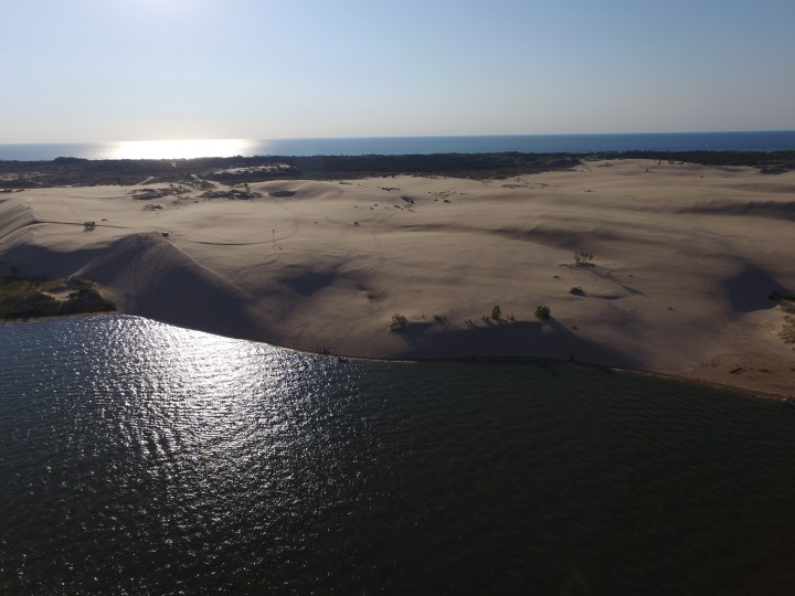 Está aí um lugar que sempre vamos. Tem um camping muito legal para se ficar com as crianças (que tem piscina) o qual fica bem no centrinho da cidade (O Yogi Bear Jellystone), então dá para ir passar a pé com a criançada. Tem uma prainha do state park ótima para crianças com playground, banheiros e um dos pores de sol mais lindos de Michigan! E para os que gostam de emoção tem os passeios de 4X4 nas dunas.