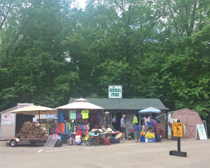 A insfrestrurada era ótima com banheiros femininos e masculinos espaçosos, área de ducha para tomar banho individuais e separada dos banheiros, o que é ótimo para dar banho nas crianças. A água é quente e com bastante pressão. Logo na entrada do campground tem uma lojinha de conveniência que vende além de bugigangas lenha e gelo. Todos os sites (que é o espaço reservado para você montar a sua barraca) tem mesa de pic-nic, fire-pit e ponto de energia elétrica, porém torneira com água potável apenas em alguns pontos. A parte ruim é que não tinha área de pia comunitária para lavar a louça suja e por motivos óbvios não se pode lavar louça suja de comida nas torneiras disponíveis, então a dica é levar tudo o mais descartável possível e bastante papel toalha para poder dar aquela limpada nas panelinhas e frigideiras.