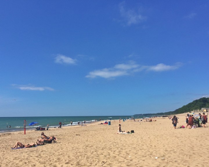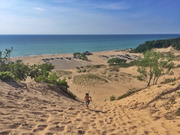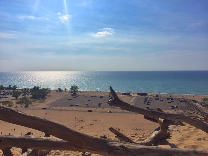 Chegamos no sábado e o tempo estava muito bom, com sol mas não tão calor. A praia tem faixa de areia grande, a areia é fina com algumas pedras e água cristalina (e gelada claro!). Mesmo com o vento, que acaba formando ondas no lago, as crianças se divertiram muito e passamos a tarde toda na praia! Outro atrativo dessa praia são dunas que se formam e dá para subir no topo delas para apreciar a vista lá de cima. O por-do-sol visto de lá deve ser lindo, mas como agora est escurecendo tarde por aqui (o por-do-sol é por volta das nove e meia da noite) voltamos para a área do campground antes de começar a escurecer.