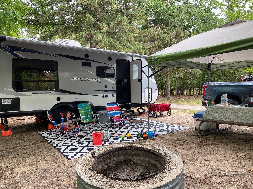 Durante os meses de verão é super comum as pessoas acamparem de barraca (tent camp) ou com os chamados RVs aqui em Michigan (abreviacao para Recreational Vehicle, o que seria “veículo recreacional em português). Existem diferentes tipos de RVs como os motorhomes, trailers, campervans, popup camper, truckcampers, etc.