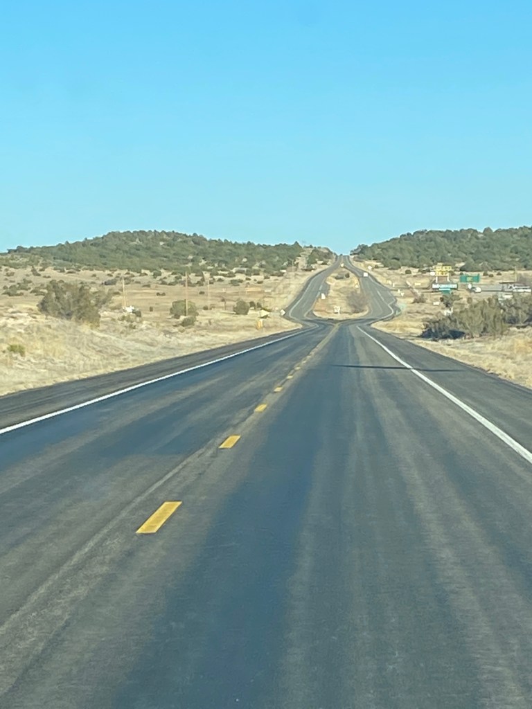 Este trecho da rota 66 entre Kingman e o Grand Canyon South Rim leva aproximadamente 3 horas e meia sem contar as paradas para ser feita, então pode dobrar este tempo se for considerar as paradas para comer, tirar fotos e entrar nas lojas. A estrada estava em excelentes condições e com pouquíssimo movimento de carros (diferente da interstate que é sempre bem movimentada e tem muitos caminhões)