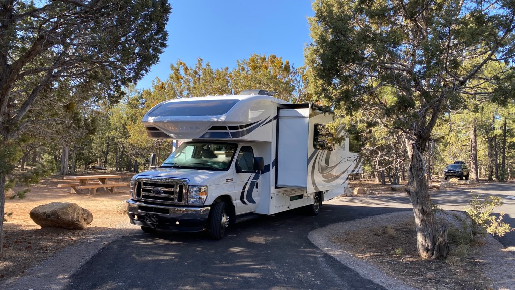 Site no camping reservado, fomos à procura de um motorhome no site do Rvshare.com, onde depois de muita busca encontramos um motorhome classe C para 5 pessoas ano 2021, novinho e com kilometragem ilimitada! Tudo conspirando a nosso favor para a viajem!!