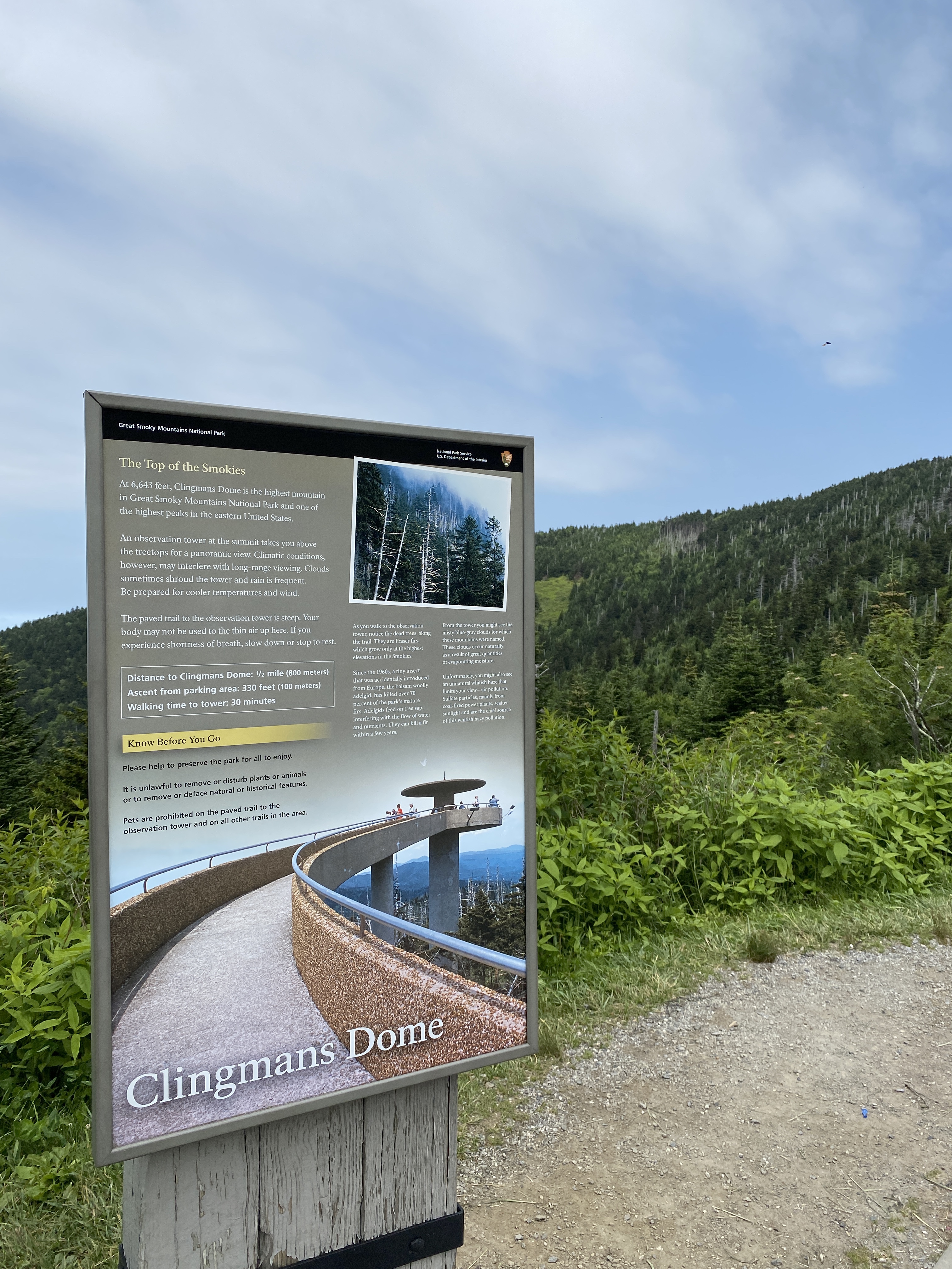 Um dos mirantes mais populares é o Clingsman Dome, onde você sobe uma rampa até chegar em uma torre que tem uma vista 360 das montanhas.