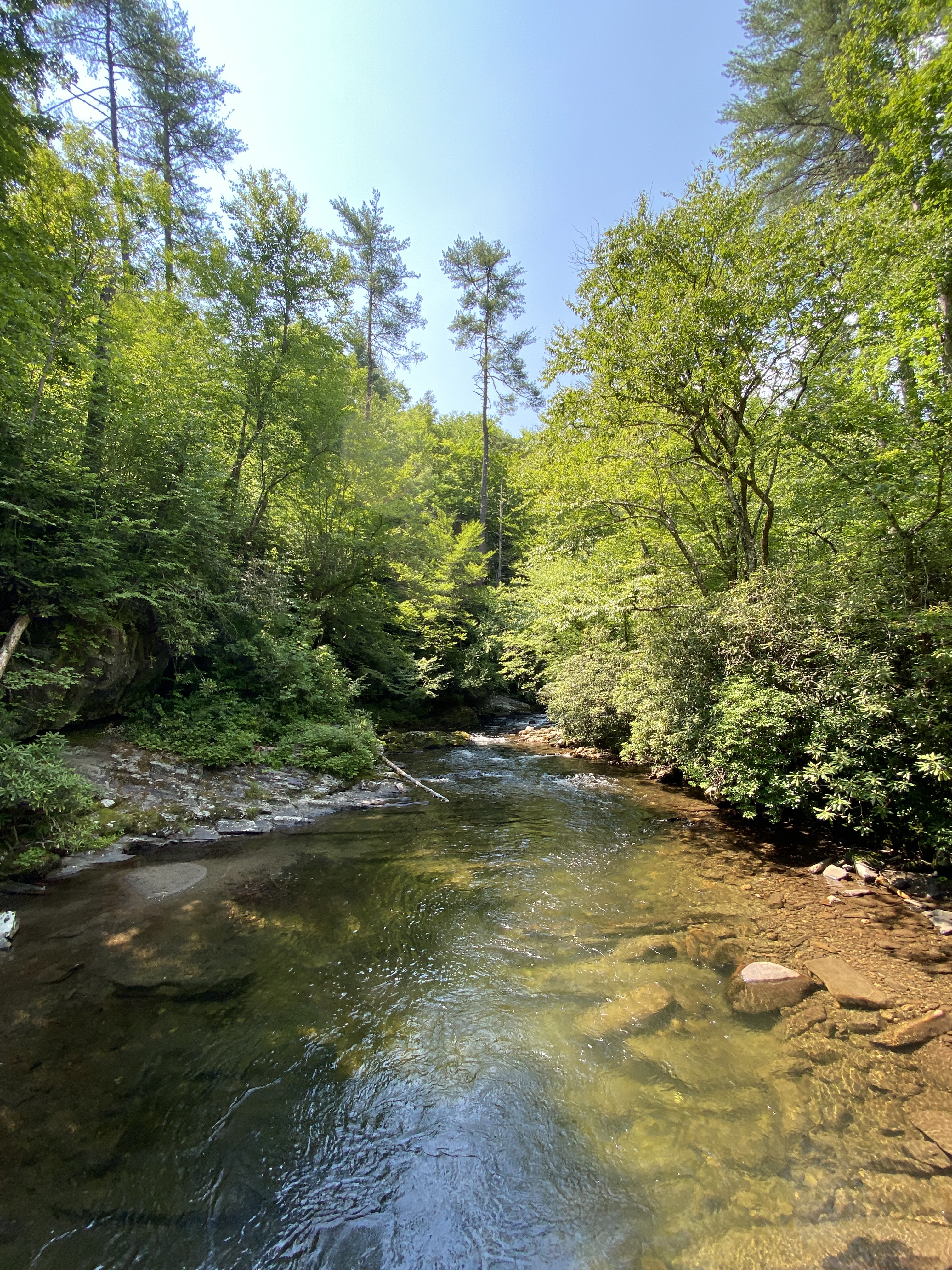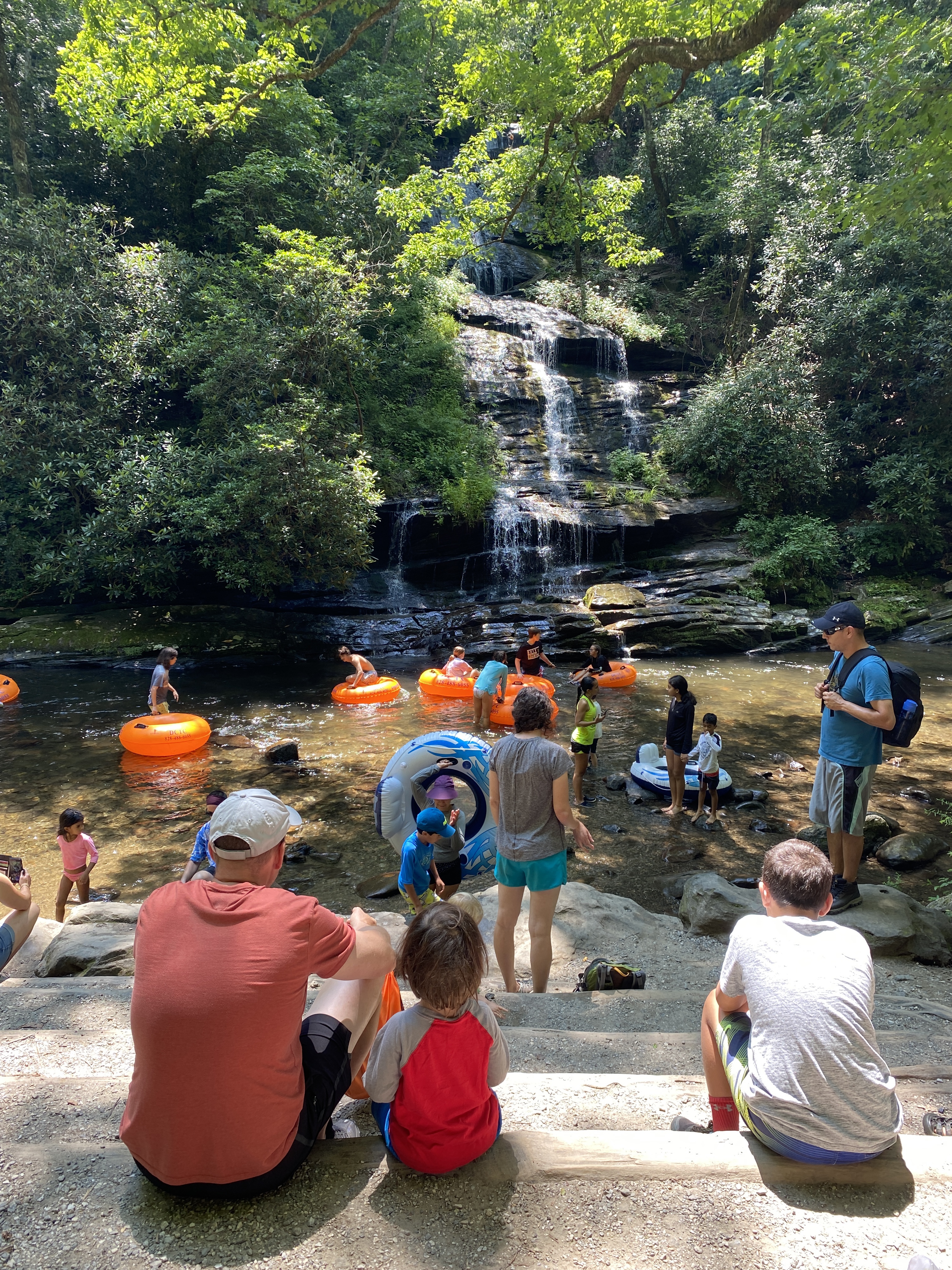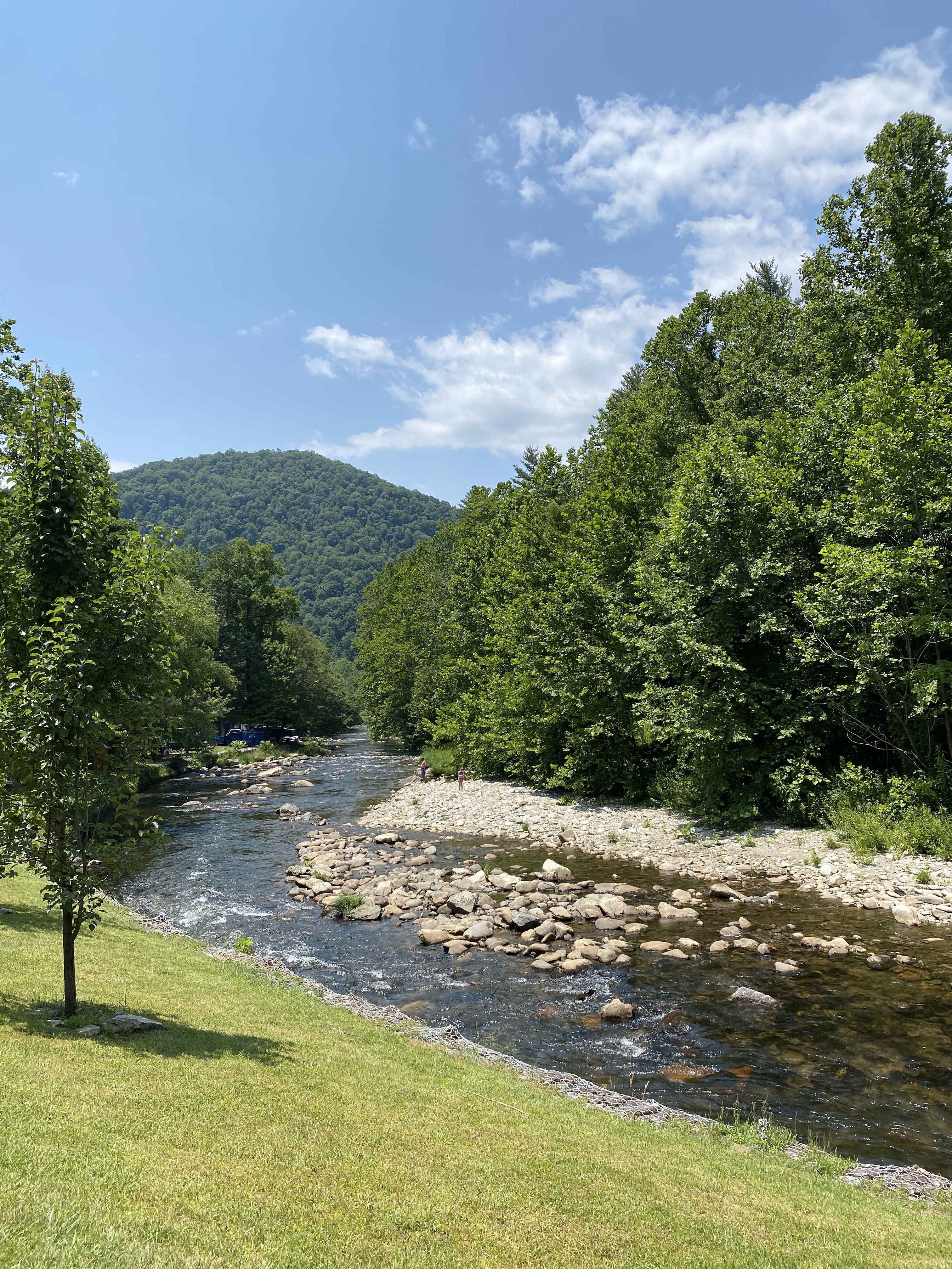 A localização do camping era excelente, a uns quinze minutos de Cherokee e praticamente no pé da Smoky Mountains e com um rio lindo passando ao lado do campground, além de ficar pertinho da Mingo Falls, uma das cachoeiras de fácil e que dá para ir tranquilo com as crianças.