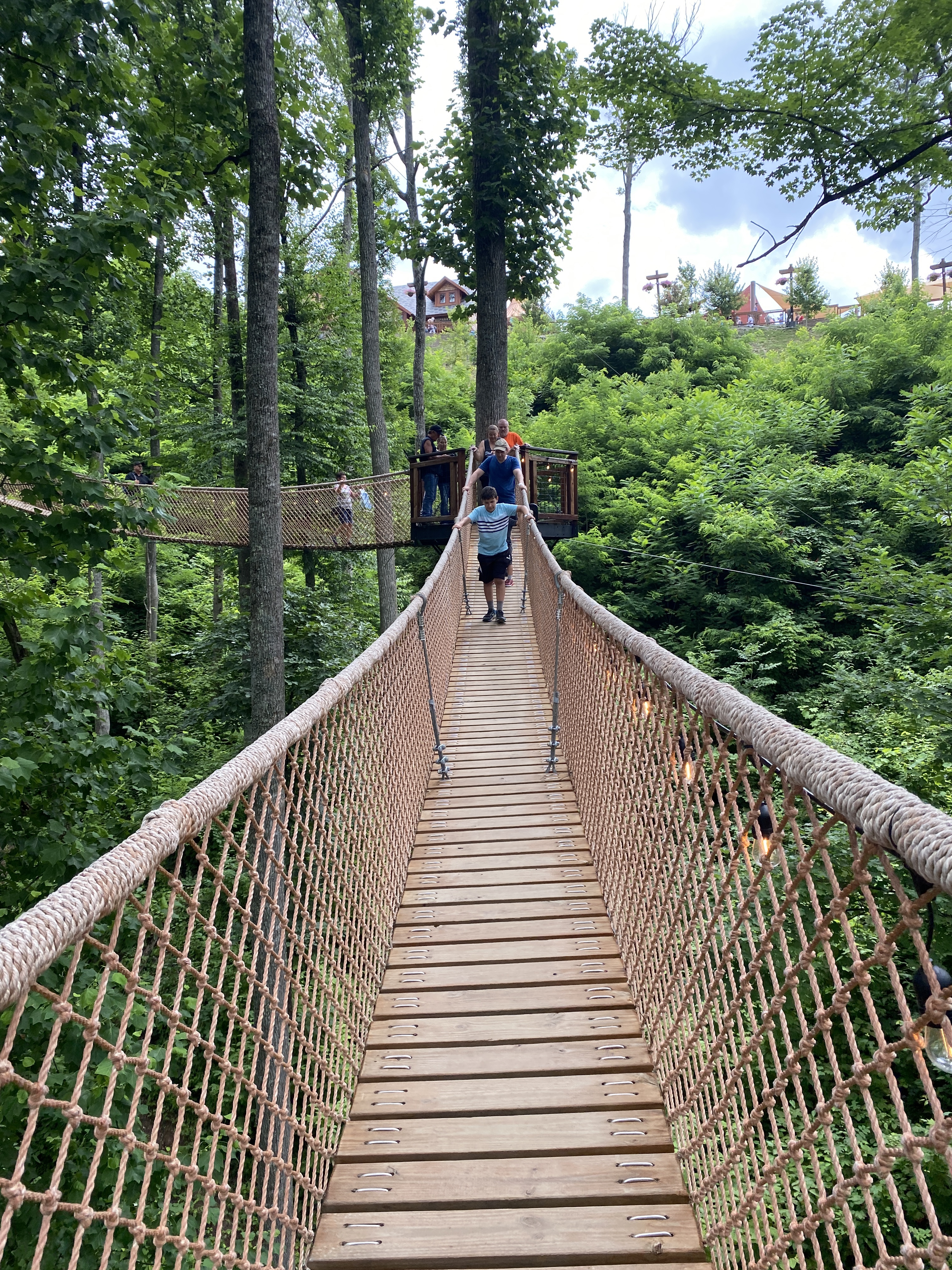 O Anakeesta é um parque temático que fica no topo de uma montanha no centro de Getlinburg. O melhor maneira de chegar lá é subindo de teleférico, mas tem a opção de ônibus para quem não se sente confortável de subir de bondinho.