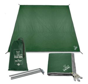 - Leve uma lona (tarp ou tent footprint) para colocar embaixo da barraca, ela irá proteger a base da sua barraca dos debris do chão e promover um isolamento evitando que o chão da barraca fique úmido, mas lembre-se que ela não pode ficar maior que a base da barraca (para fora), pois em caso de chuva a água vai escorrer para baixo da sua barraca fazendo o efeito contrário do desejado. Se tiver espaço no carro leve uma lona extra, de preferência que tenha os orificios nas extremidades para passar uma corda e cobrir a barraca em caso de chuva (e cordas extras)