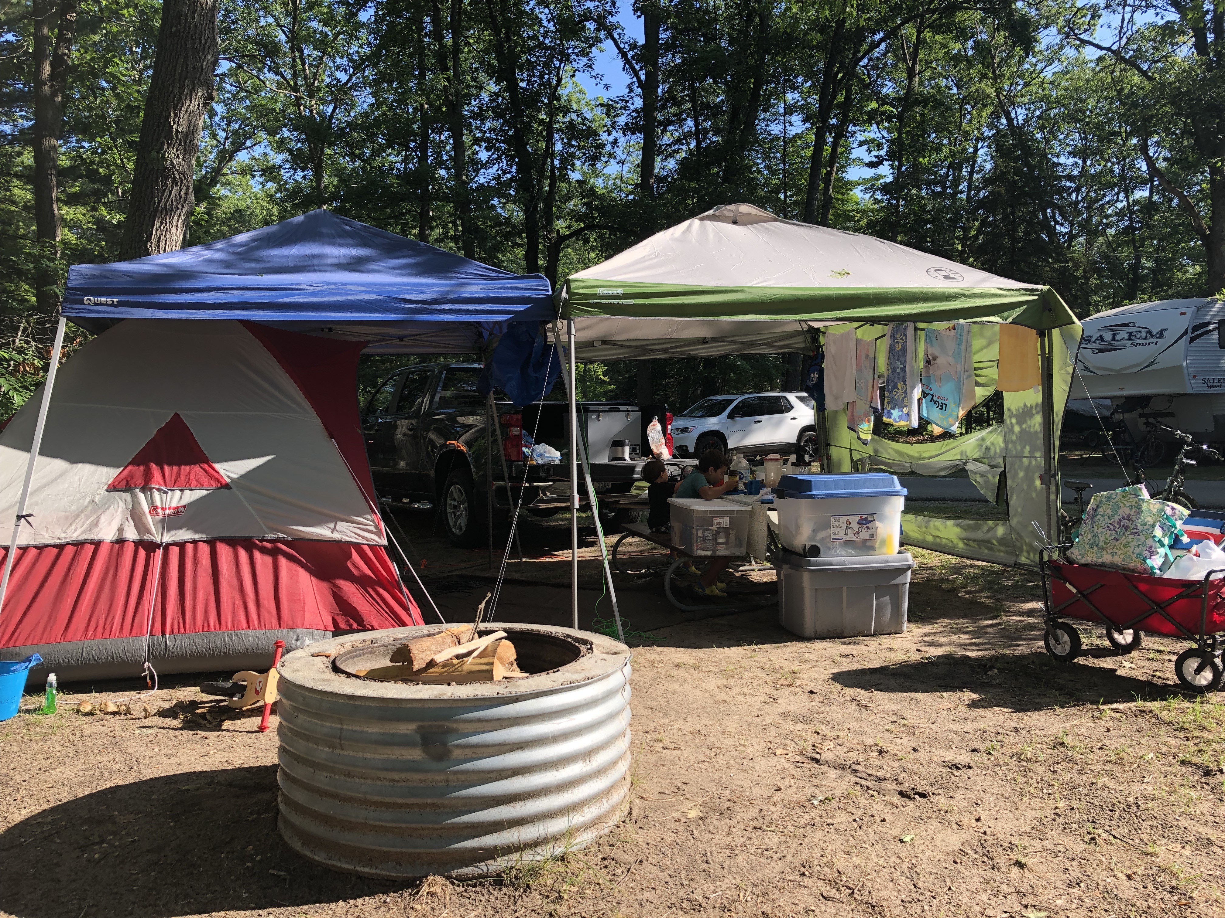 Primeiro de tudo, se for acampar em um State Park aqui em Michigan, reserve o seu site com antecedência, pois aqui em Michigan os campings lotam no verão! Os meus eu começo a reservar em Janeiro/fevereiro assim que os sites começam a ser liberados no site do DNR. Nos campings privados tipo KOA ou Yogi Jellystone é mais fácil encontrar sites, mas também não deixe para a última hora pois corre o risco de não achar site disponível.