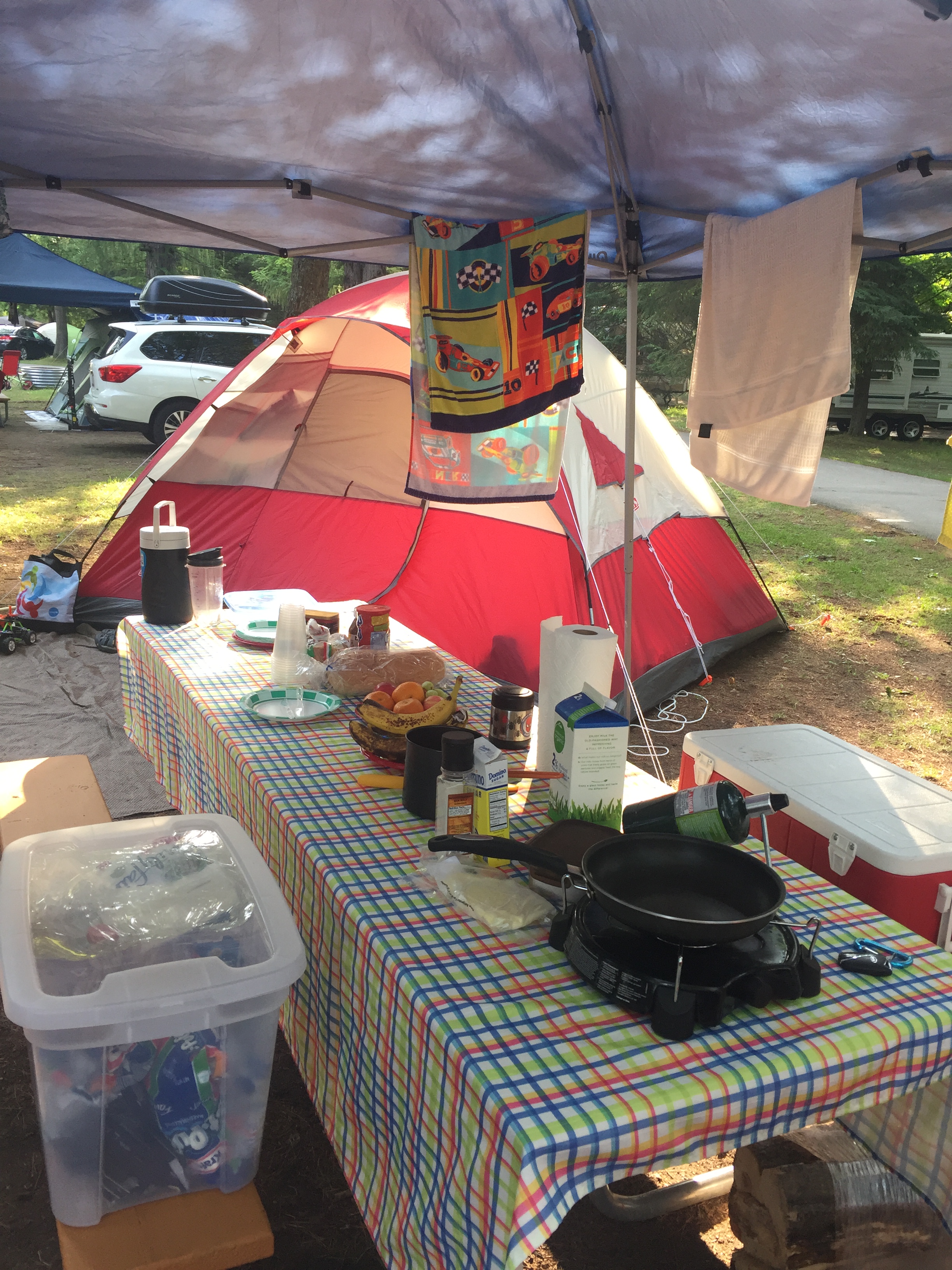 - itens básicos que não podem faltar: sacos de lixo, muito papel toalha, lenços umedecidos, acendedor/fósforo, álcool para acender o fire pit, espetos para fazer smores, temperos tipo sal, azeite, cadeiras dobráveis, um tapetão tipo esteira para colocar na frente da barraca, duas extensões grandes, uma extensão com soquete para lâmpada ou um lampião a bateria para iluminar a mesa durante a noite, lanternas, martelo para prender as estacas da barraca no chão, cordas extras, pano de prato, galão de água , um contêiner para poder lavar a louça, toalha de mesa retangular grande de preferência impermeável, detergente e esponja.